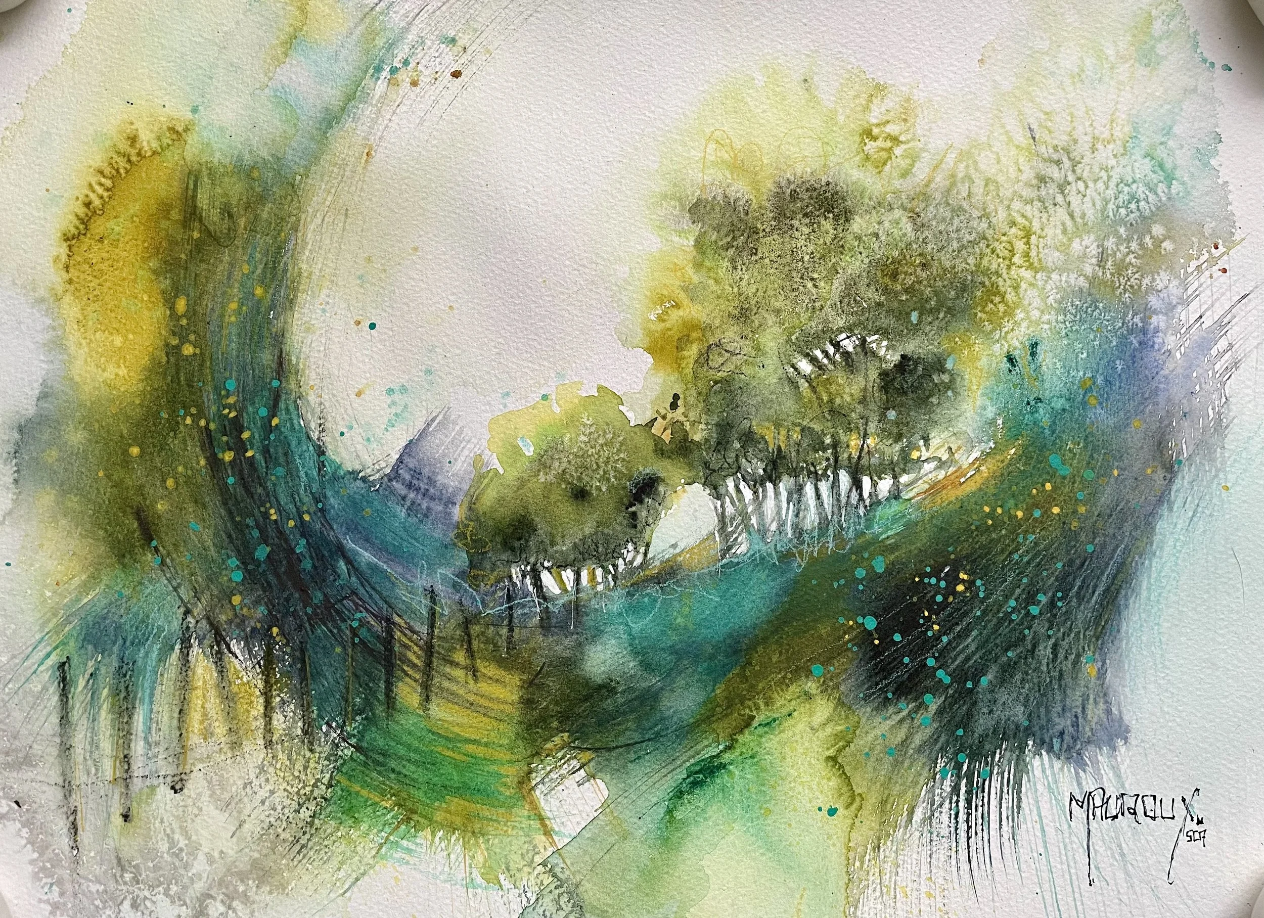 Vague de Vert 10 x 14 po. Encadrée sous vitre 275,00$
