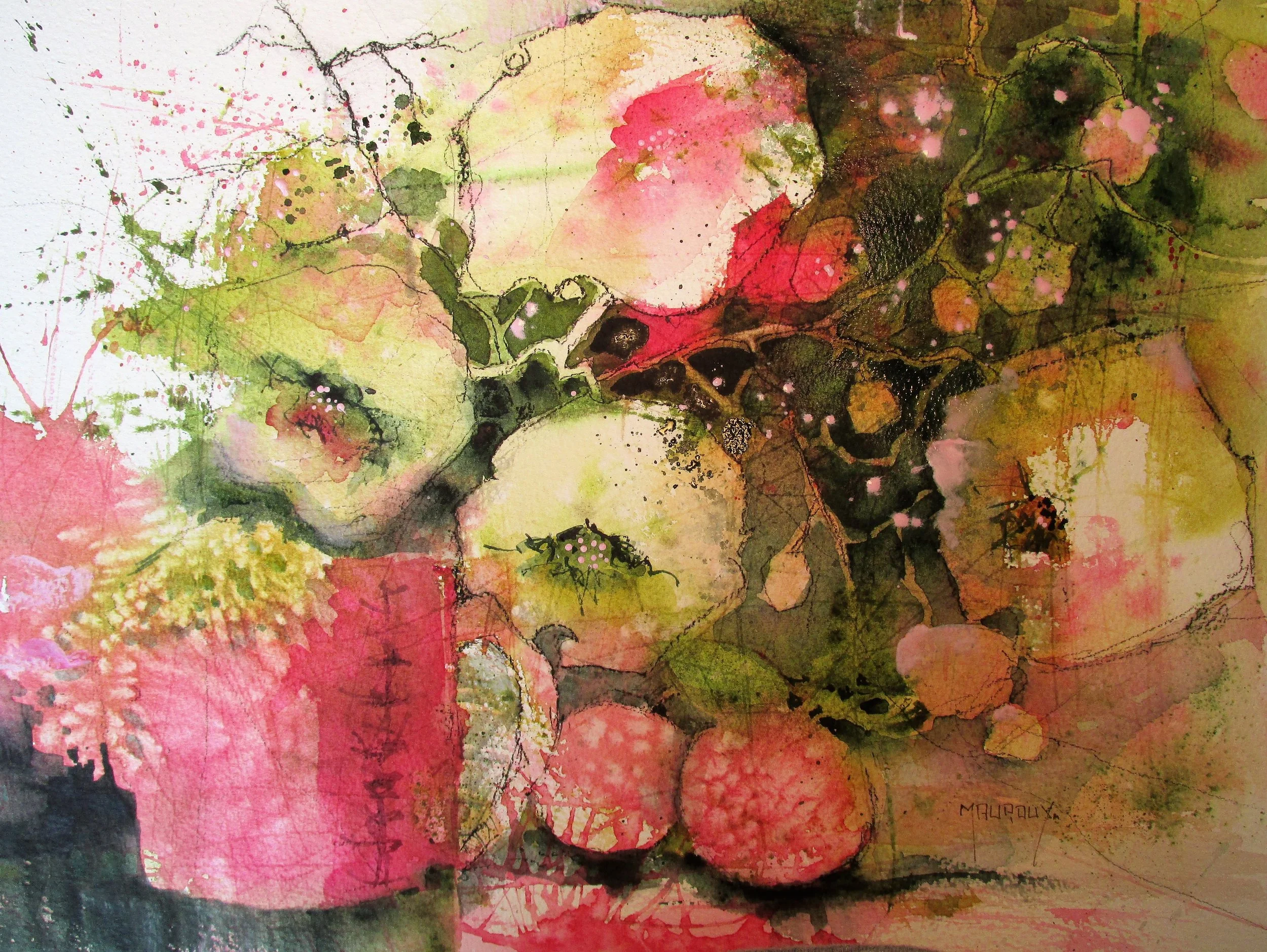 Rose et Vert 10 x 14 po. Encadrée sous vitre 275,00$